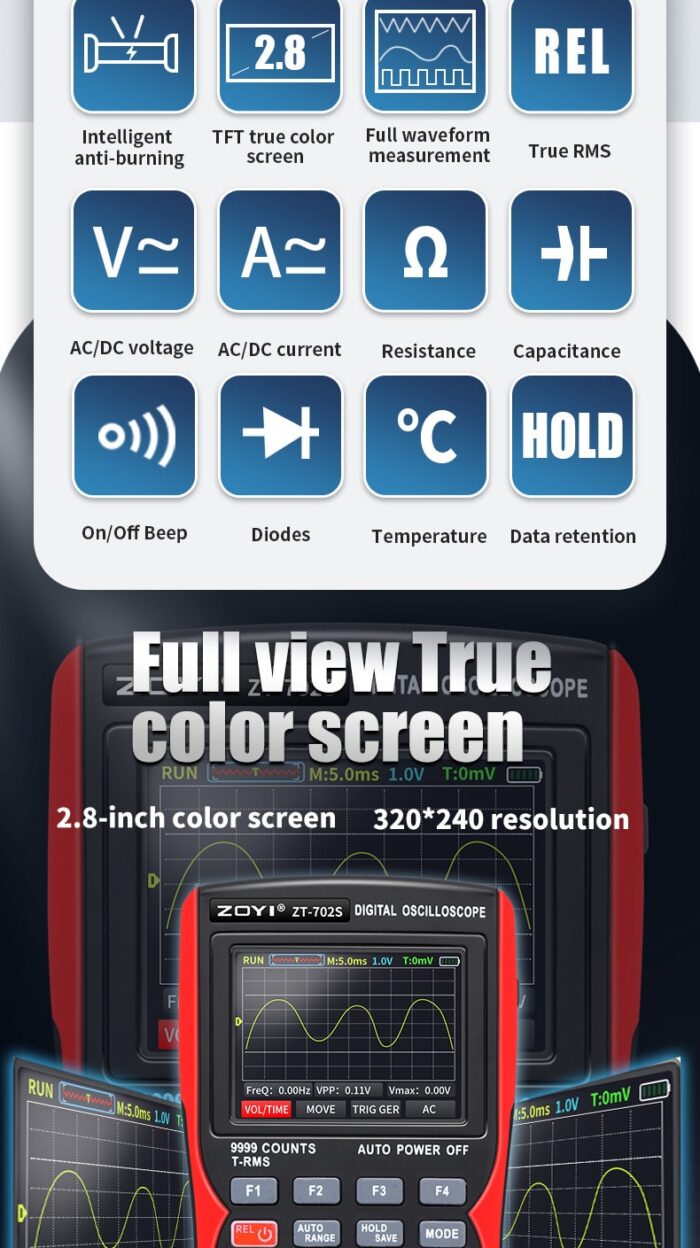 “name”: “أوسلسكوب وملتيميتر رقمي ZOTEK ZT-702S”,