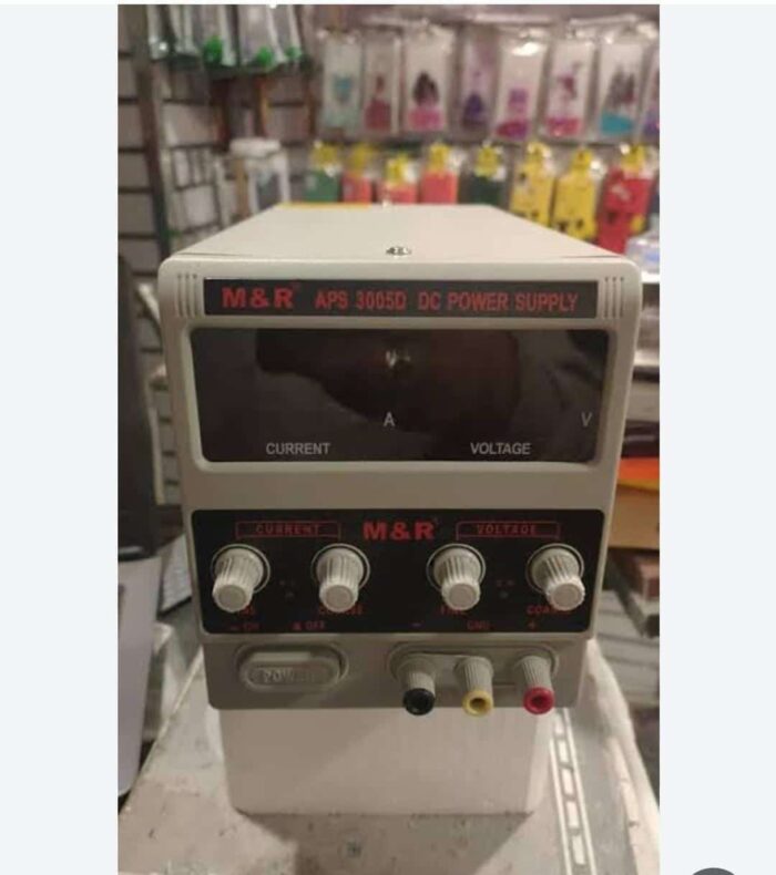 “text”: “باور سبلاي 30 فولت 5 امبير MR APS 3005D هو مصدر طاقة معملي قابل للتعديل يوفر جهدًا خرجًا مستمرًا يمكن ضبطه من 0 إلى 30 فولت وتيار خرج يمكن ضبطه من 0 إلى 5 أمبير. يستخدم في ورش صيانة الإلكترونيات والمختبرات لاختبار وتغذية الدوائر.”