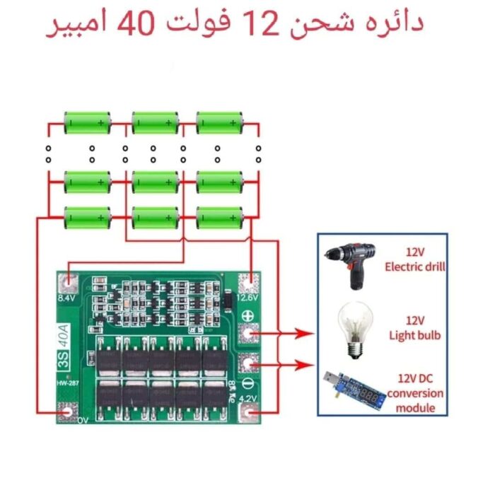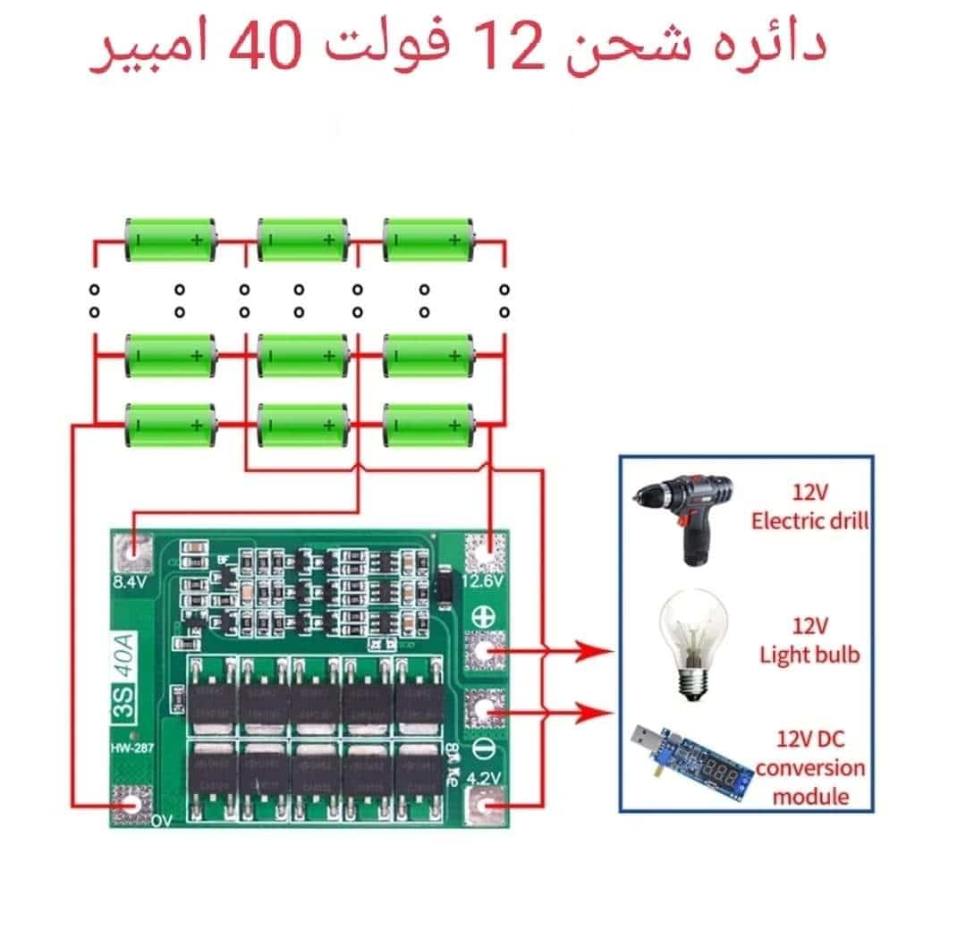 دايره شحن 12 فولت 40 امبير BMS 3S 40A 12V