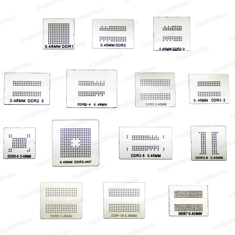 طقم شبلونه للرامات يونيفرسال (12 قطعة) هو مجموعة أدوات متخصصة مصممة لتلبية احتياجات فنيي صيانة الإلكترونيات الذين يتعاملون مع شرائح الرامات من نوع BGA. يتكون الطقم من 12 قطعة من الشبلونات المعدنية المصنوعة بدقة عالية. كل قطعة في الطقم مصممة لتتوافق مع نمط معين من تخطيط كرات القصدير المستخدم في أنواع مختلفة من شرائح الرامات (مثل DDR1, DDR2, DDR3, DDR5 وغيرها).