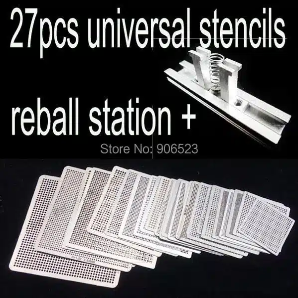 - 🧩 أكثر من 20 قالب Reballing بمقاسات وتصاميم مختلفة لتناسب كافة أنواع رقائق BGA.