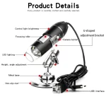 “text”: “يوفر ميكروسكوب X1600 تكبيرًا يصل إلى 1600 مرة، وهو مزيج من التكبير البصري والتقريب الرقمي.”