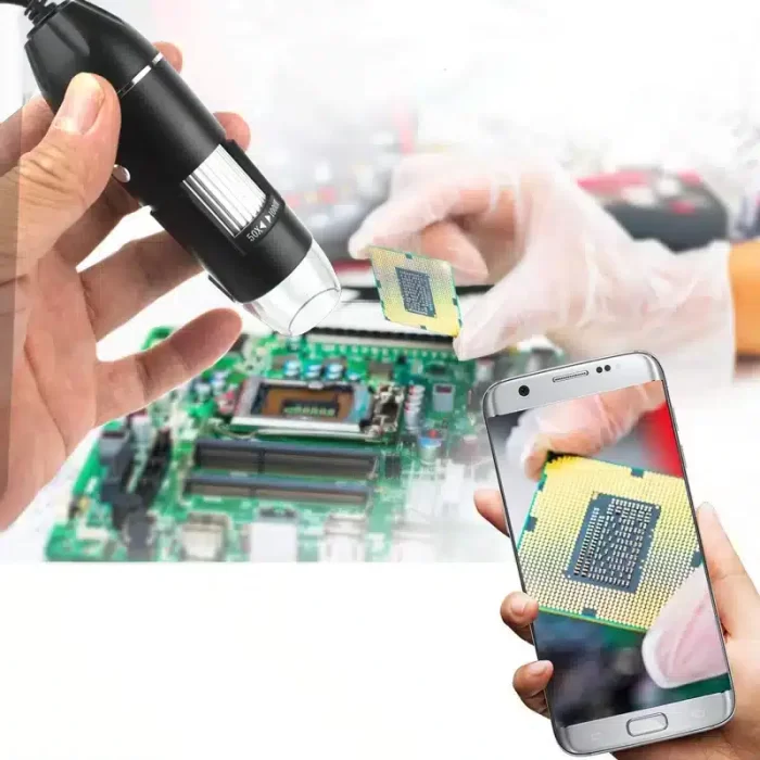 ميكروسكوب X1600 USB Type-C هو ميكروسكوب رقمي قوي ومحمول يوفر تكبيرًا كبيرًا يصل إلى 1600 مرة. ما يميز هذا النوع من الميكروسكوبات هو سهولة استخدامه وقدرته على عرض الصور والفيديوهات مباشرة على شاشة الكمبيوتر أو الهاتف الذكي. هذا يجعله أداة مثالية للمشاركة، التسجيل، والتحليل التفصيلي للعينات. سواء كنت فنيًا يقوم بفحص لحام مكونات SMD الدقيقة على لوحة إلكترونية، أو هاويًا يستكشف عالم الحشرات الصغيرة، أو طالبًا يتعلم عن بنية المواد، فإن ميكروسكوب X1600 سيوفر لك رؤية واضحة وعالية التكبير. في الجوكر للالكترونيات، نحن نقدم ميكروسكوب X1600 USB Type-C لنوفر لعملائنا أداة قوية، عملية، واقتصادية لاستكشاف العالم الدقيق من حولهم.