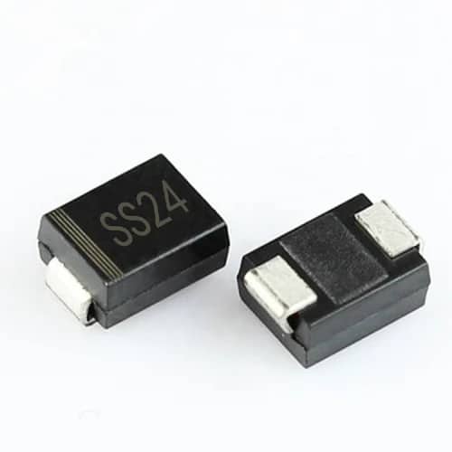 يأتي الدايود SS24 عادةً في حزمة SMA (DO-214AC)، وهي حزمة قياسية للتركيب السطحي (SMD – Surface Mount Device).